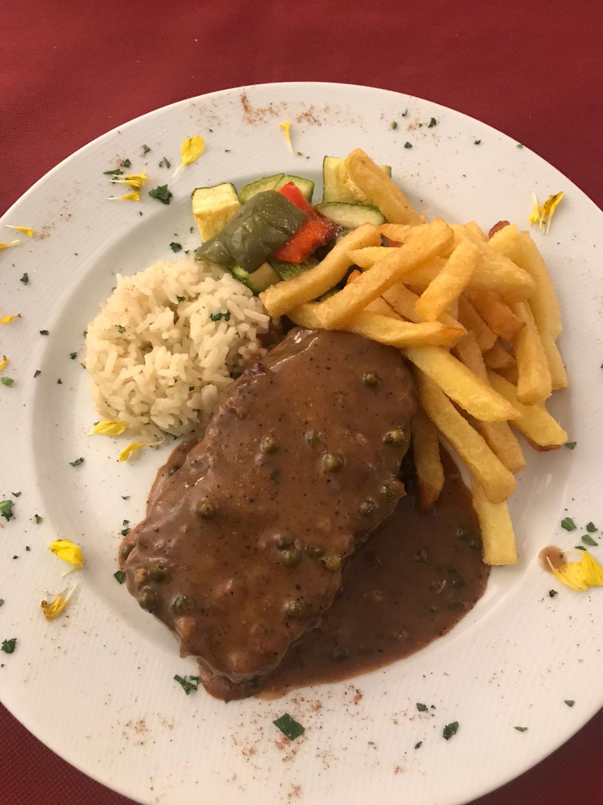 Philedelphia cheese steak pasta bake approx 400 kcal.